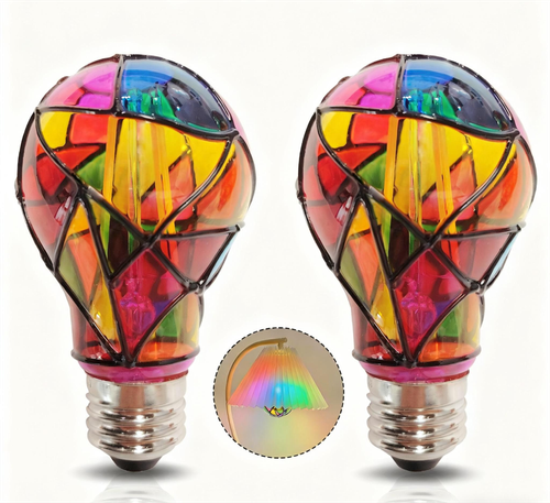2Pcs Hand Painted Stained Glass LED Light Bulb