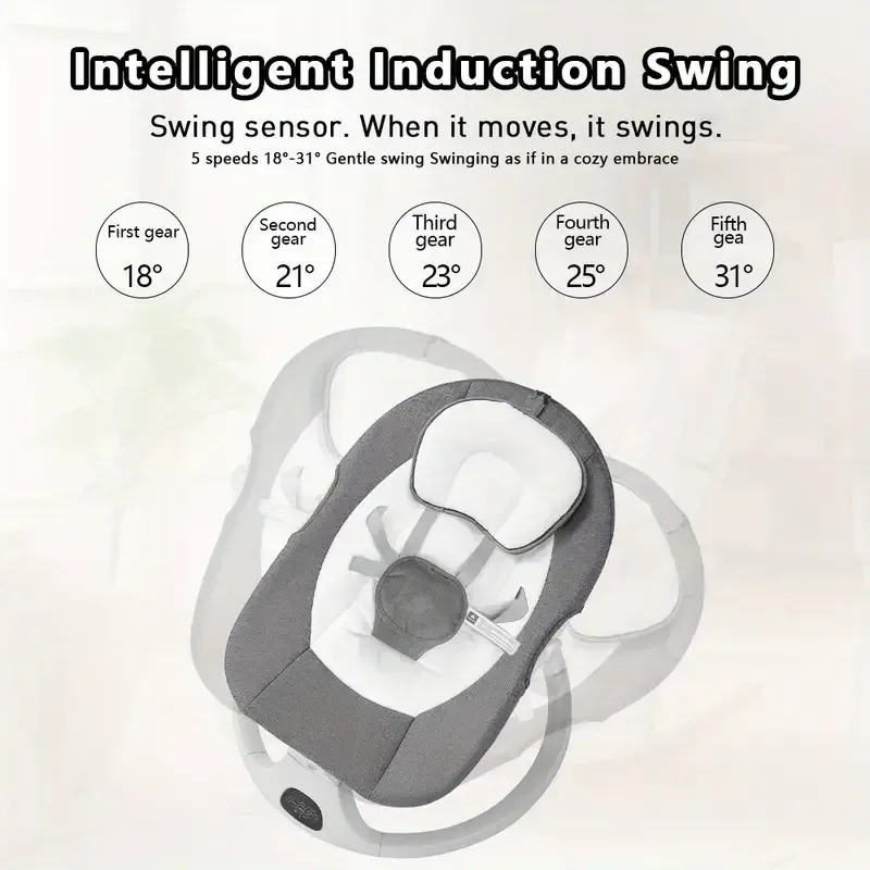 Portable 5 Speed Rocker with Music, Remote Control, and Touch Screen for - Suitable for 0-9 Months, 5-20 lbs, Gray 19 sales