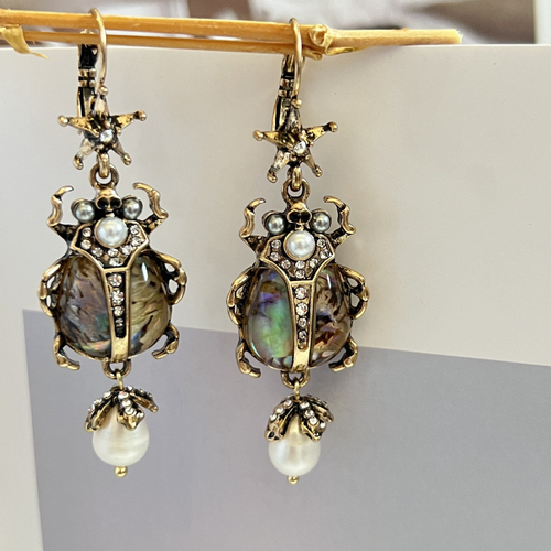 Vintage Style Rhinestone Beetle Pearl Earrings 8 sales